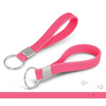 Unique key ring with a 12mm wide silicone loop. It is branded with debossing which gives a three-dimensional effect below the surface. All or part of the debossed surface can be colour filled with two or more colours which is optional.